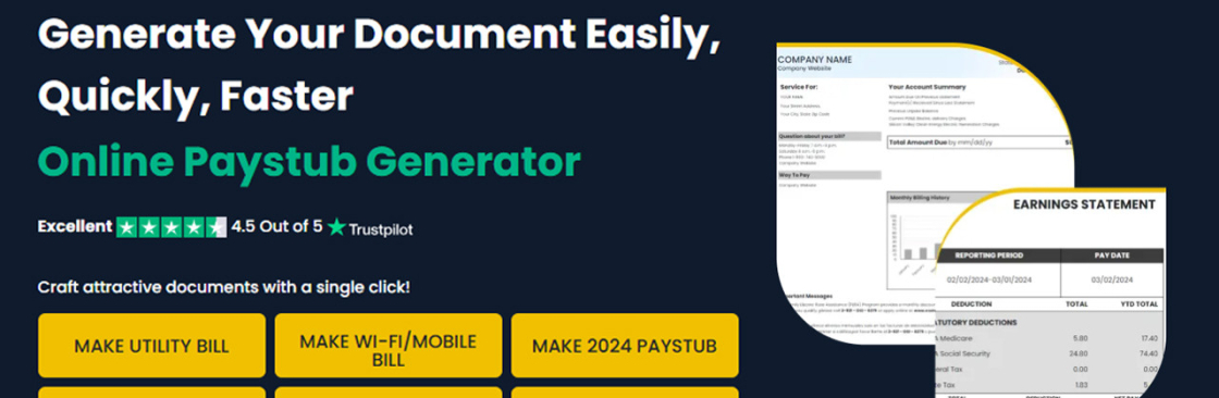 Online Bill Generator is your one-stop solution for all payroll needs. Create pay stubs, generate paycheck stubs, and make payroll checks online in minutes with our easy-to-use, free pay stub generator.